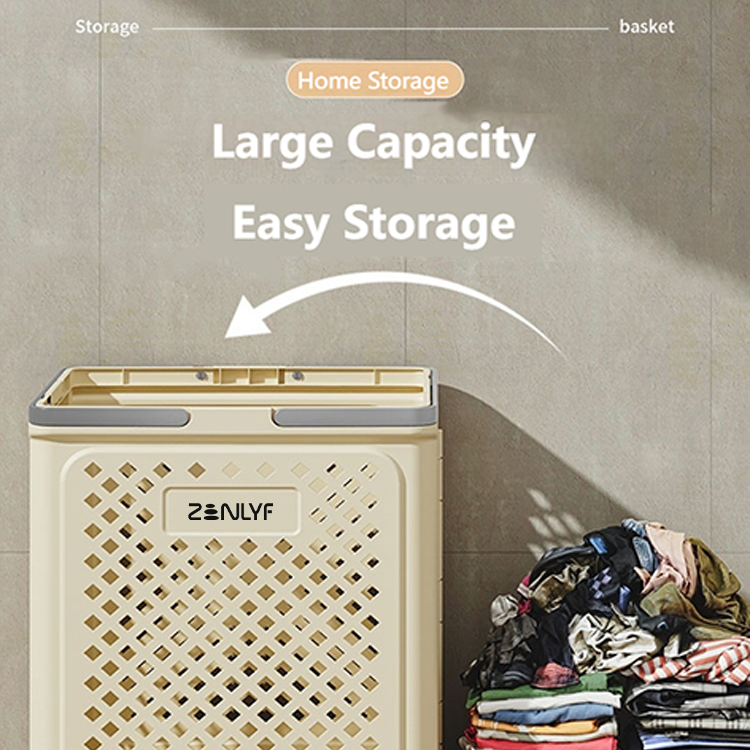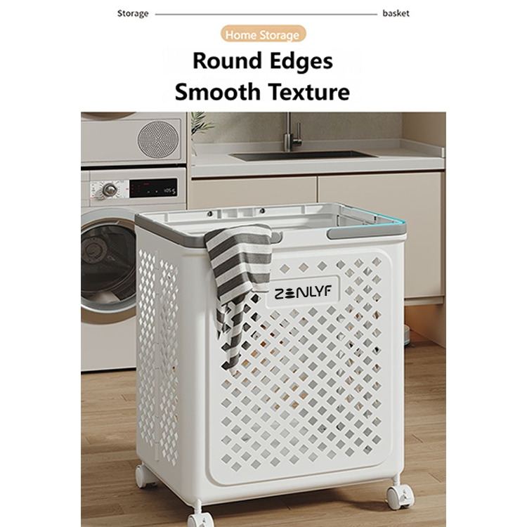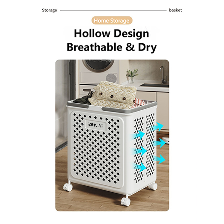 Zenlyf Foldable Laundry Basket Plastic with Wheels | Multipurpose Collapsible Clothing Basket for Storage | Laundry Organiser for Clothes, Bathroom & Toys (White)