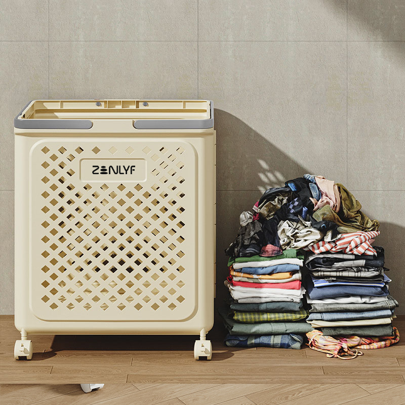 Zenlyf Foldable Laundry Basket Plastic with Wheels | Multipurpose Collapsible Clothing Basket for Storage | Laundry Organiser for Clothes, Bathroom & Toys (White)